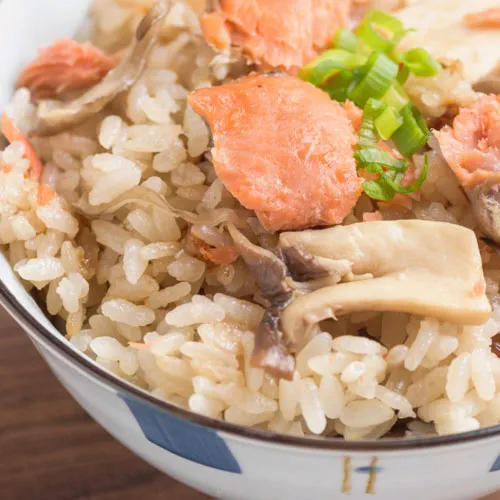 香ばしく焼き上げたほぐし鮭をご飯にたっぷり混ぜ込みました。鮭の旨みが引き立つ、シンプルながら満足感のある一品です。